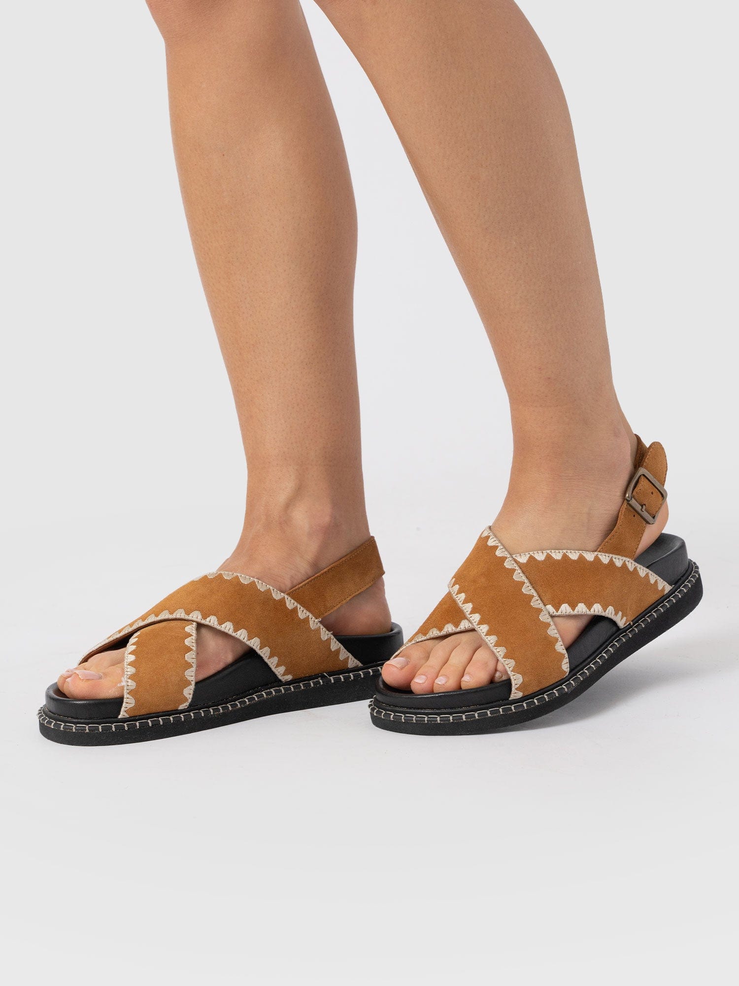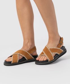 Saint + Sofia Women’s Shoes Bonnie Cross Over Sandals – Tan | Tan