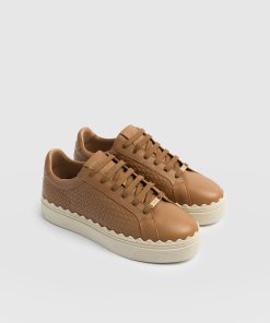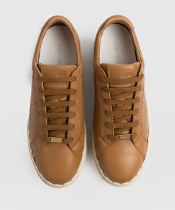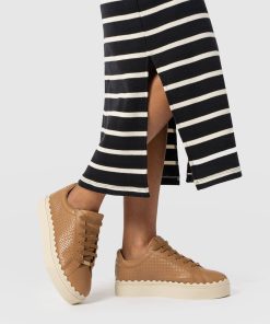 Introducing the Scallop Sneaker, a classic pair of tan leather trainers with a contemporary platform sole and textured design. This easy-to-wear style is designed in our London atelier and handmade using Portuguese leather in our Europe studios. They’re shaped to a low-rise silhouette with a round toe and a scalloped trim that adds an elegant twist. But for a final flourish, they’re decorated with a woven side panel that adds a touch of interest to your daily looks.