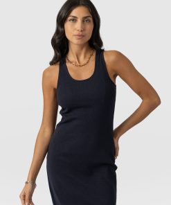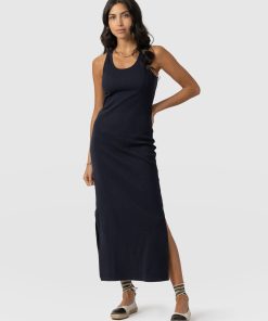 A comfortable cotton maxi dress in navy with a gentle rib finish. Designed for a comfortable, figure hugging fit (with a little stretch) and with racerback slits on both sides. Made with the softest, smoothest organic cotton. Each one is finished by hand in our studios in Europe to guarantee the perfect fit and feel that’s true to size. Pair with slides, sandals or sneakers in summer or barefoot when you’re on the beach.