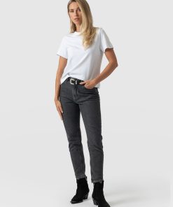 A classic, slim mom jean in black, handmade with the softest recycled cotton blend for the perfect fit and feel. They’re high-waisted with a straight leg and specially designed for a flattering fit. We designed these in our London studios and hand-finished them in Europe. Wear them with boots, sneakers or heels for a smart casual look.