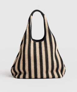 Saint + Sofia Women’s Large Stella Shoulder Tote Bag – Beige/black Raffia | Beige & Black Raffia