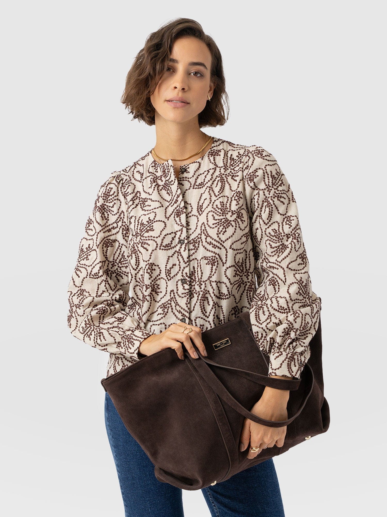 With puff sleeves and a floral embroidered finish, the Tabitha Blouse in Cream/Brown becomes a beautifully feminine design to add to your wardrobe. It’s masterfully handmade by our skilled artisans in Europe using a cotton and linen blend and shaped to a relaxed button-up shirt silhouette with a classic crew neckline. Finished with buttoned cuffs and branded fastenings, it exudes elegance. Wear yours with jeans by day and trousers with heels by night.