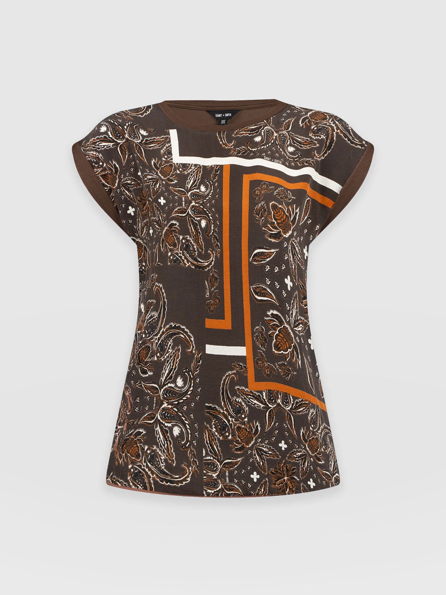 A classic crew-neck tee in our Brown Paisley print with rolled cap sleeves. The Turn Up Tee is cut to a relaxed, easy fit that’s perfect for throwing on with any outfit and features a contrasting back for added interest. Each one is handmade in Europe using the softest cotton blend fabric to ensure all-day comfort. Pair it with jeans or leggings and your favourite trainers, or opt for skirts on warmer days.