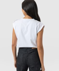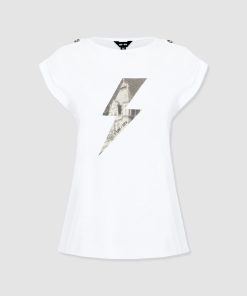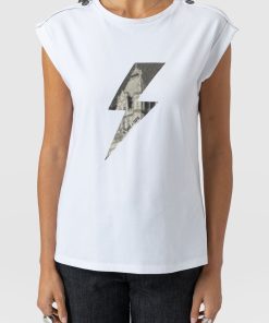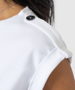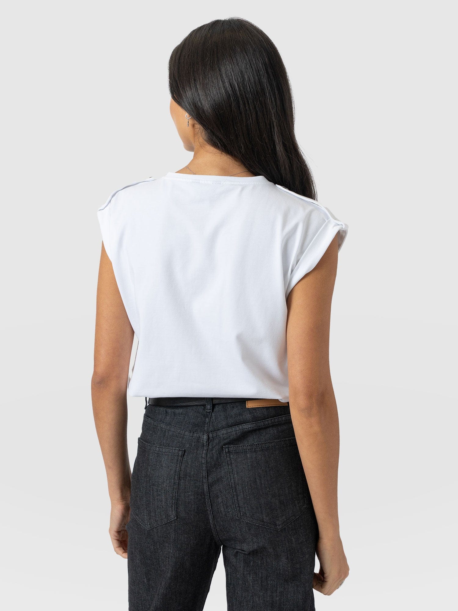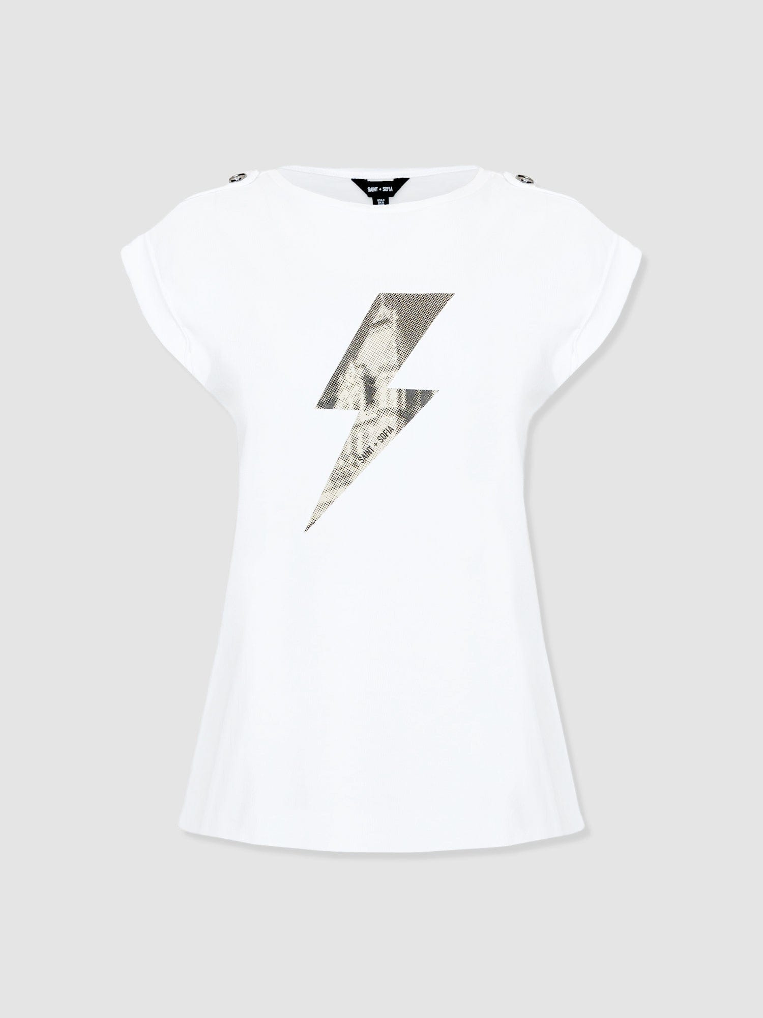A classic and comfortable crew neck tee in white with a black lightning bolt print at the chest and button details at the shoulders. The Turn Up Tee is designed for relaxed adventures and is handmade from the softest organic cotton with a hint of stretch for added ease. But the best part? The hint of Tower Bridge hidden inside the streak of lightning – a quiet homage to the city we call home. Pair yours with jeans, leggings or skirts on warmer days.