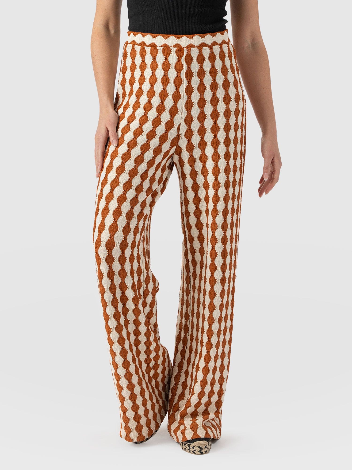 Our Victory Rib Wide High-Waisted Leg Pant in brown and cream is a wide-leg trouser with a crochet-effect finish. It features a comfortable elasticated waist in a soft and smooth material that’s infused with a hint of stretch. Style it with our matching Edna Scoop Neck Tee, or wear it alone with a vest and a pair of sneakers – or sandals in the summer.
